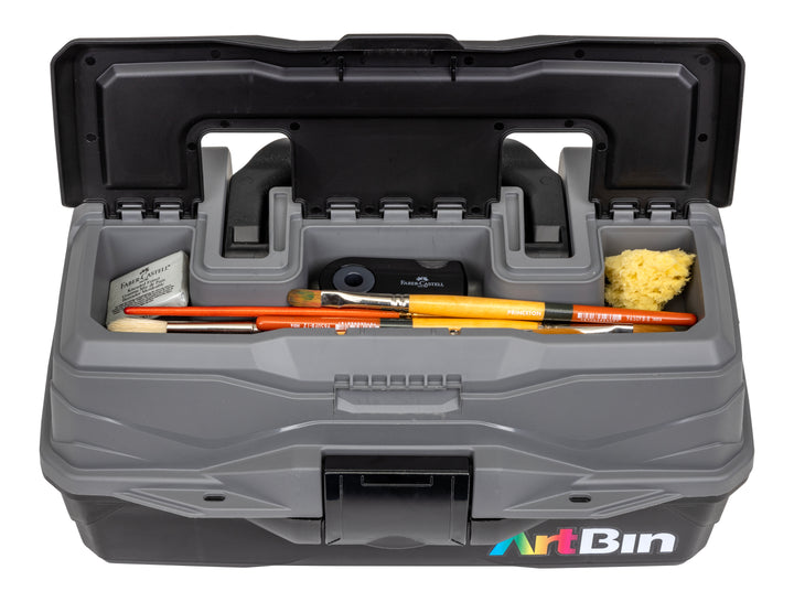 - Art Supply Box: The ArtBin 1 tray supply box is designed to store all of your arts and crafts supplies such as paint brushes, markers, paints, stamps, glues and more all in one place.