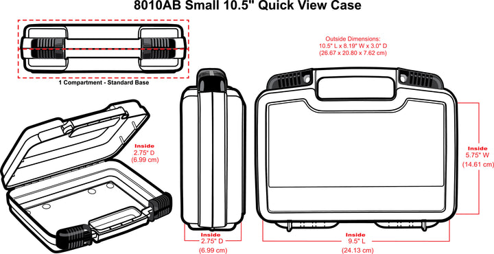 - Smart Closures: 2 Sturdy sliding latches keep contents secured during transport. The Quick View also features an easy-to-carry handle.