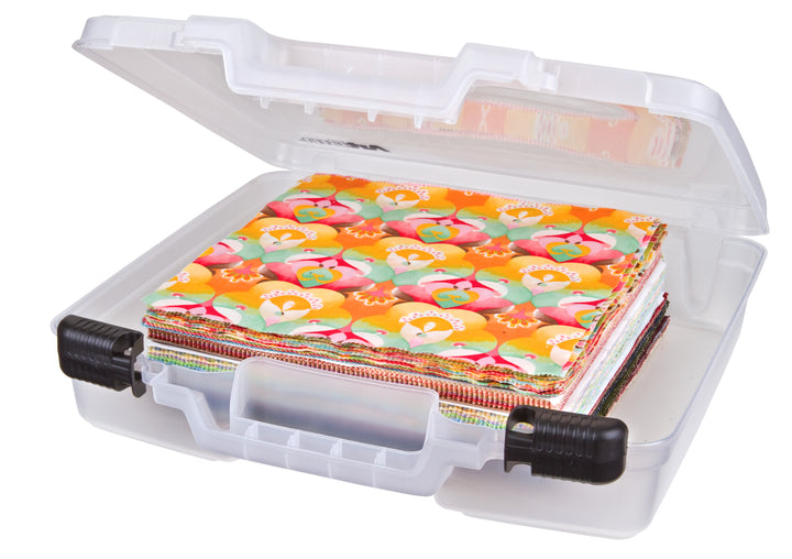 ArtBin 15" Quick View is designed to be deep enough to accommodate all of your arts and crafts essentials. The Quick View is made from a durable material that is translucent so that you can see what's stored inside. Keep your supplies secure during transport with the easy-to-carry handle and sliding lockable latches.