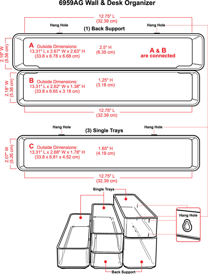 - Multiple Bins: This organizer includes [3] separate bins and [2] connected bins that stand in a stadium style arrangement.