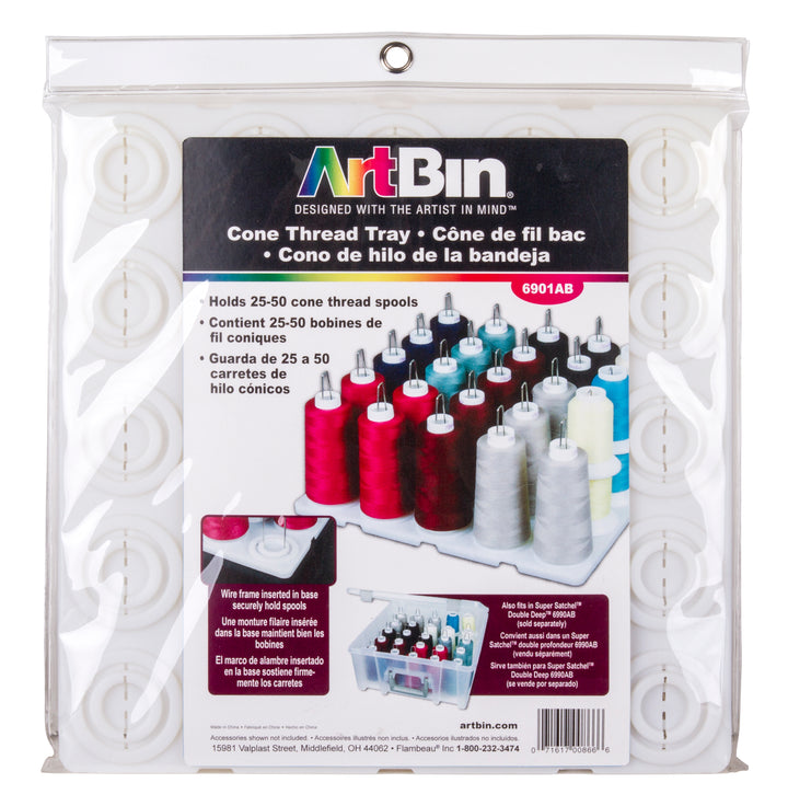 - Cone Thread Tray: The ArtBin Cone Thread Tray is designed to make embroidery and threadwork easier. It includes prongs for secure storage of thread cones and can be used with the ArtBin Cone Thread Tray 6901AB for organizing and easy access to your thread spools