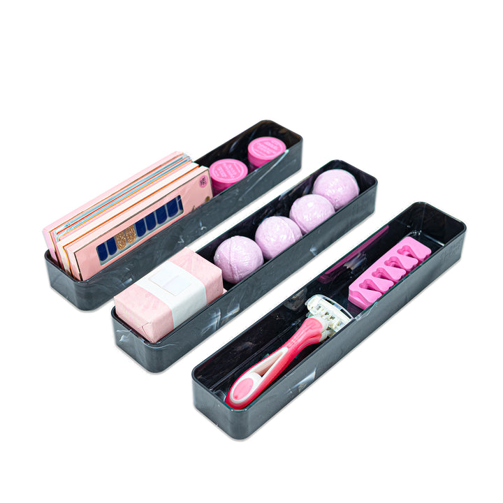 Plastic Dark Marble Trays - Durable, Lightweight & Stackable Multi-Use Design (3-Pack)