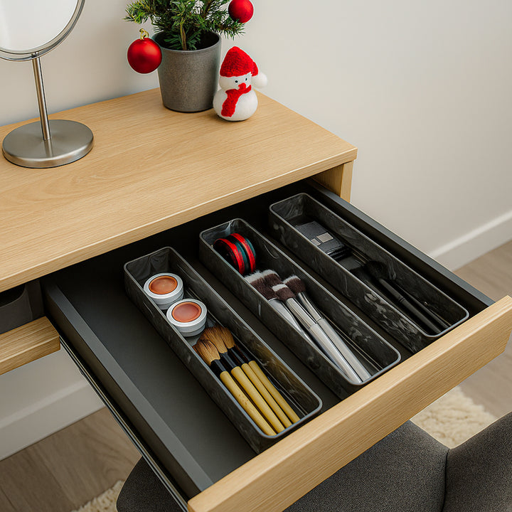 - Chic Grey Marble Look: Upgrade your storage game with Best Kept's sleek grey marble trays. Perfect for modern or minimalist spaces.