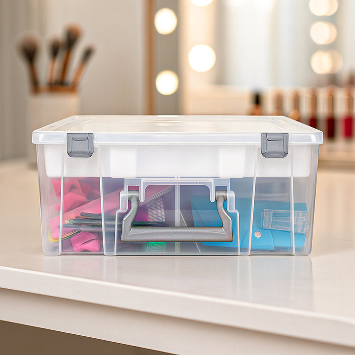 SEMI-TRANSPARENT MATERIAL: Easily see your stored supplies through the clear plastic without opening the container.