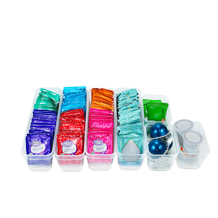 • NO CONTENT MIGRATION: Lidded bins prevent small items from mixing or spilling.