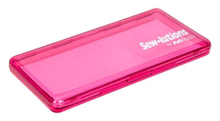- Durable Clear Plastic: The Sew-Lutions Slim Line Magnetic Box is made out of a durable translucent Polypropylene plastic that resists everyday wear & tear. The crystal clear raspberry tinted plastic gives an unobstructed view of the box’s contents.