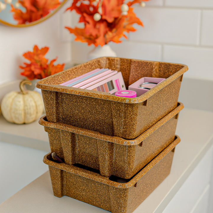Stackable Storage Solution Dark Brown Plastic Bins (3 pack)