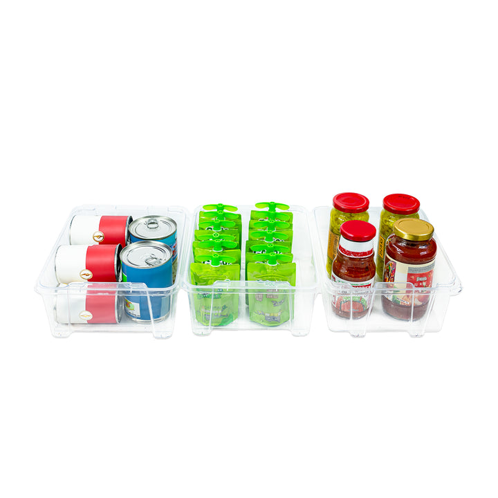 • 3-PIECE ORGANIZER BINS: Set of clear and opaque plastic bins for versatile storage.