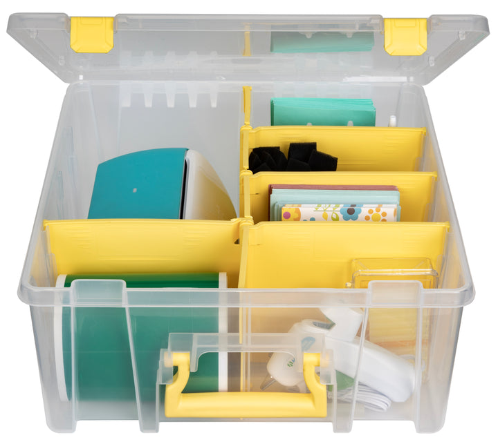 Introducing the ArtBin Super Satchel™ Double Deep with Removable Dividers, a game-changer for art and craft enthusiasts in search of the ultimate storage solution. Designed for the storage of bulk art and craft supplies, this double-deep satchel box is engineered with precision, offering unparalleled customization options to cater to your unique organizational needs. The extra depth of this innovative storage container provides ample space for the accommodation and organization of larger, bulkier supplies. From templates and paint tubes to craft sheets, ribbons, threads, documents, and photographs, this polypropylene storage box ensures that your creative essentials are securely stored, protected from wear and tear. Customization is at the core of the Super Satchel™ Double Deep, featuring one core compartment and eight removable dividers. Easily tailor the space to your liking, whether you prefer the open core for versatility or the organized compartments for specific storage requirements. The possibilities are vast, providing a flexible solution for your diverse range of creative materials. This Super Satchel™ seamlessly fits into the Super Satchel™ Cube (6855SC), offering a modular and stackable system for efficient space utilization. Additionally, it accommodates various accessories such as the serge thread tray (6901AB), paint tray (6828AG), marker tray (6939AB), and the accessory tray (6814AG), enhancing the functionality and versatility of your storage setup. Crafted in the U.S.A. with a commitment to quality, all boxes in the Super Satchel™ Series are molded from acid-free plastic, ensuring the longevity and protection of your valuable art and craft supplies. The "standard depth," "slim," and "double deep" models are stackable, providing an organized and space-saving solution for your creative haven. Beyond its utility for art and craft supplies, the Super Satchel™ Double Deep is a versatile storage option for small toys, doll accessories, building blocks, and trading card collections. The flawless design, complete with snap-tight latches and a smart handle, makes it a portable and relevant choice for individuals seeking efficient and portable art storage solutions. Transform your creative space with the ArtBin Super Satchel™ Double Deep with Removable Dividers – where innovation meets organization. Say goodbye to clutter and welcome a new era of artistic orderliness. Order now and experience the ease of access and peace of mind that comes with superior organization!