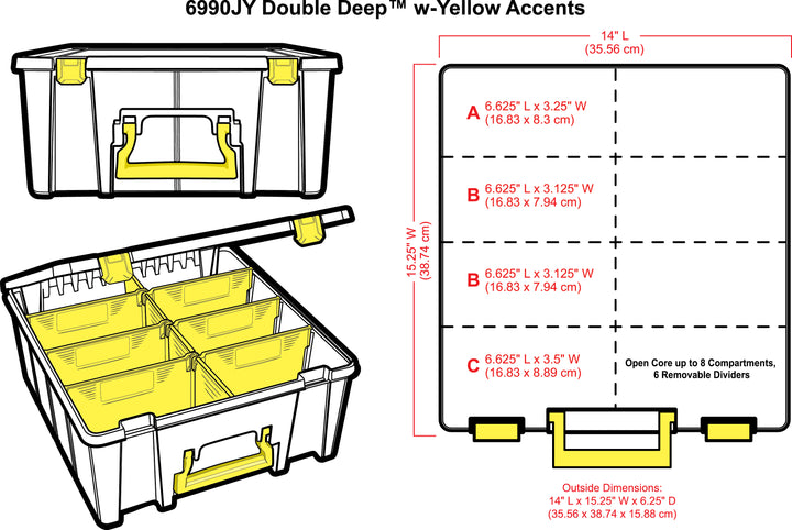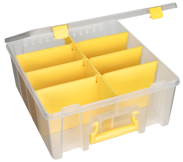 - Portable Art Storage Box with 2 to 8 removable, double-deep compartments for organized storage of art and craft supplies.