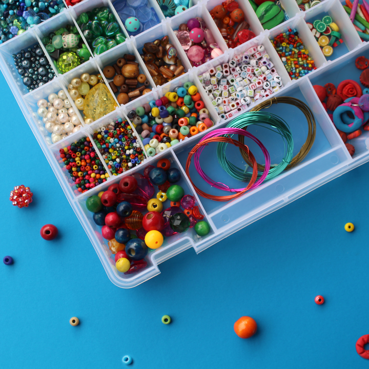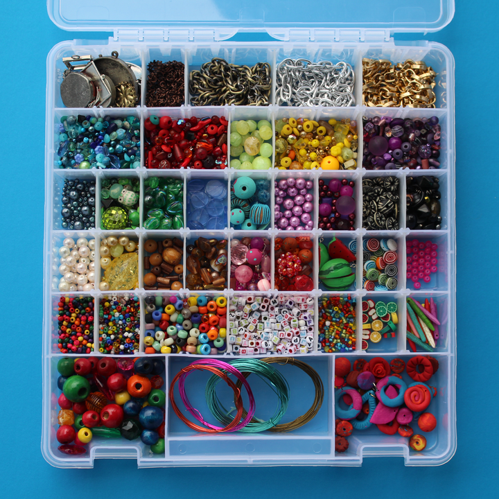 - Storage Satchel: This plastic storage case with removable dividers is perfect for organizing all of your small art and craft supplies such as threads, ribbons, paint tubes, embellishments, beads, buttons, and more.